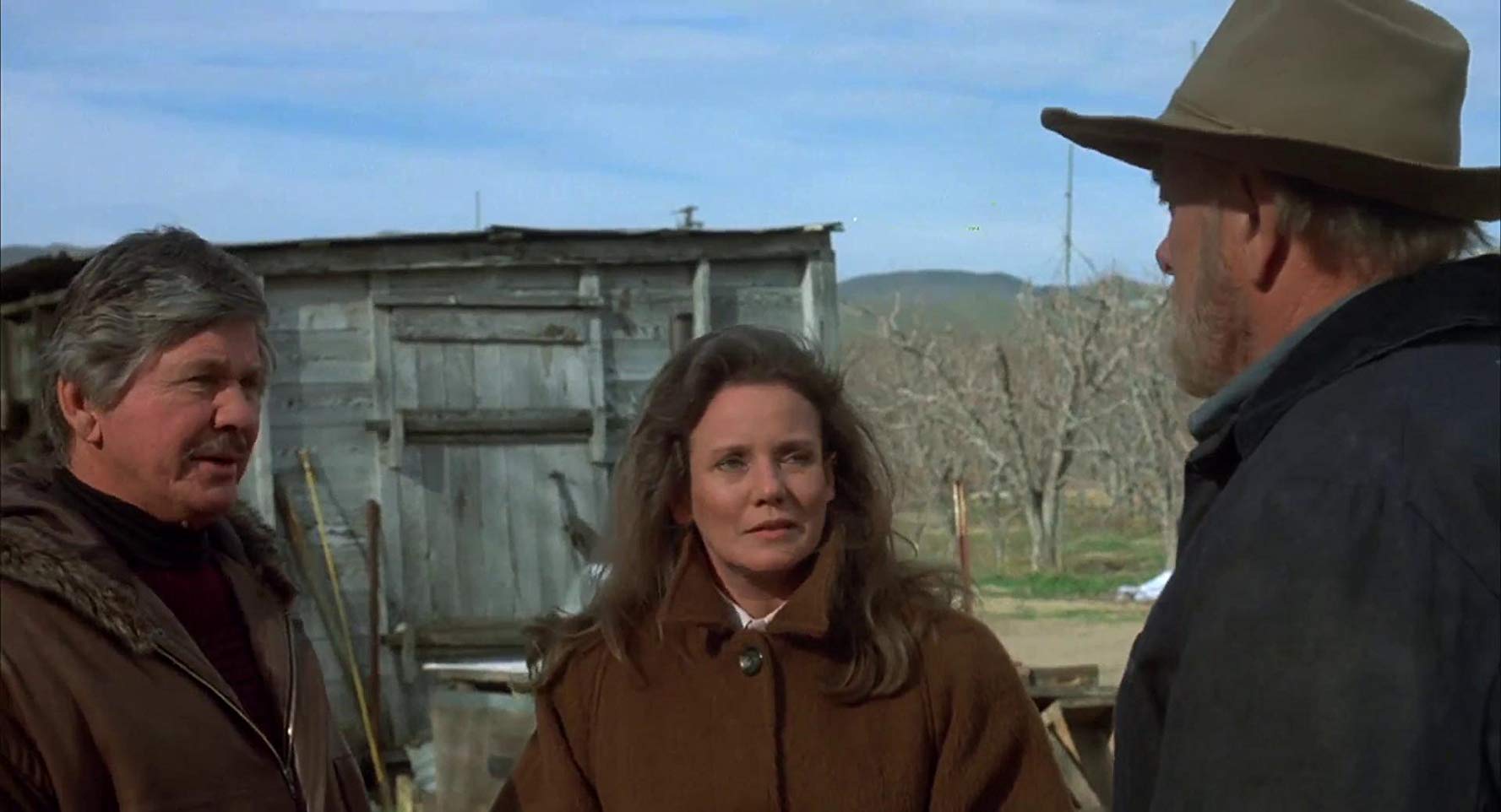 Outside of Jeff Corey’s incredible set of eyebrows the movie is picturesque with location filming in both Colorado and California as a backdrop to Bronson’s mystery solving techniques. Being this is a Cannon Films release, fans of Bronson, Norris and Dudikoff should recognize some of the background names associated with the production. From Executive Producers Menahem Golan and Yoram Globus on down to the credited music composer, Robert O’Ragland. Bronson’s long time associate Pancho Kohner also served as a producer on the film. A nice bit of trivia to pass on is the fact that Pancho is the daughter of Mexican actress, Lupita Tovar. Back in 1931 she played the role of Mina Harker in the Spanish version of Dracula filmed on the same sets as the Lugosi film after hours that was thankfully made available on the home video market after it’s rediscovery.