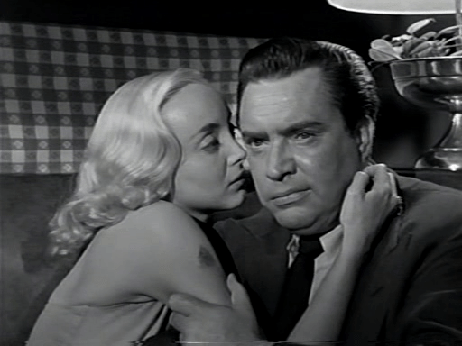 Eddie’s got big dreams for Marla and himself but the mob is going to get in his way when they send a couple of thugs played by Claude Akins and Larry Ryle to muscle him over the missing money. Eddie isn’t easy to push and calls a meeting with mob boss Hugh Sanders telling him to back down. Threats have clearly been laid down by Sanders and Akins let’s it slip to Agar that a lot of money is missing from the dead man.