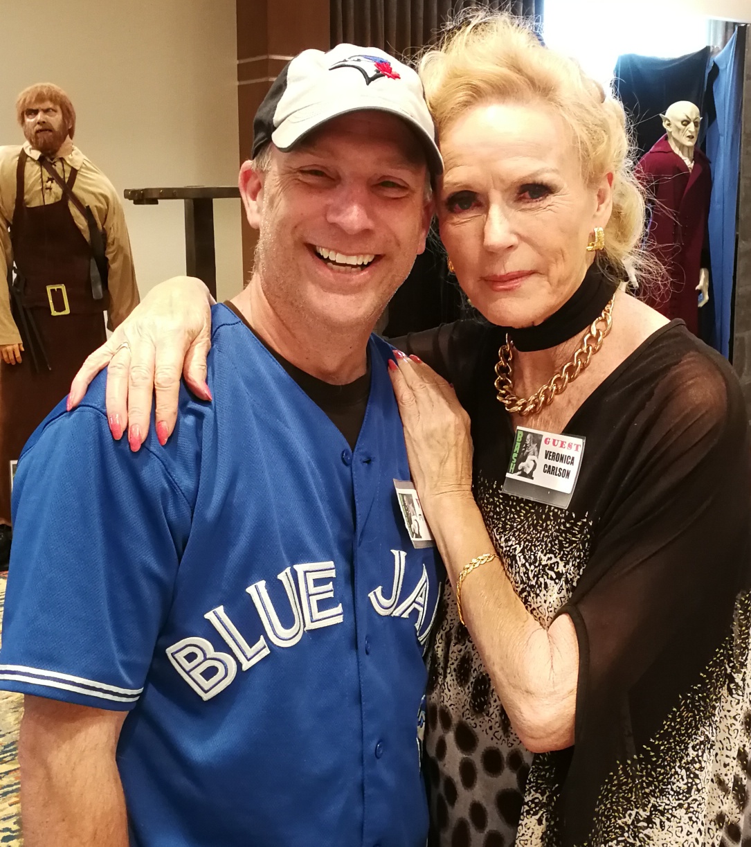 I could almost have subtitles this gallery “When Mike’s Take Met Miss Carlson.” What a lovely lady. I’d seen her here a few years ago but at that time didn’t own any classic memorabilia to bring along. This time I solved that problem by bringing two items which led to her and I having a great laugh. She burst my balloon when she broke the news to me that it isn’t her on the original one sheet release of Dracula Has Risen From the Grave for North American audiences. Still she’s used to signing them to keep the illusion alive. This proved to be a great treat. What a dear sweet lady who gave freely of her time to all the fans who made the journey.