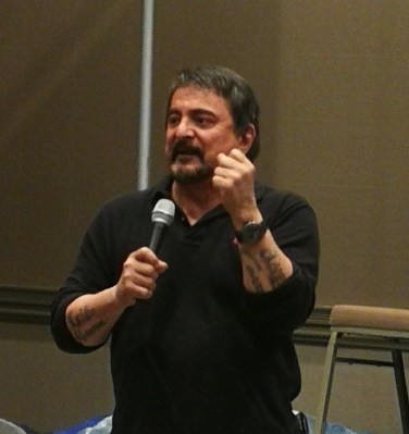 Tom Savini is a staple of the Monster Bash and this year gave an F/X demonstration involving his shooting some guests who were wired with squibs and packets of blood. Just like they do it in the movies.