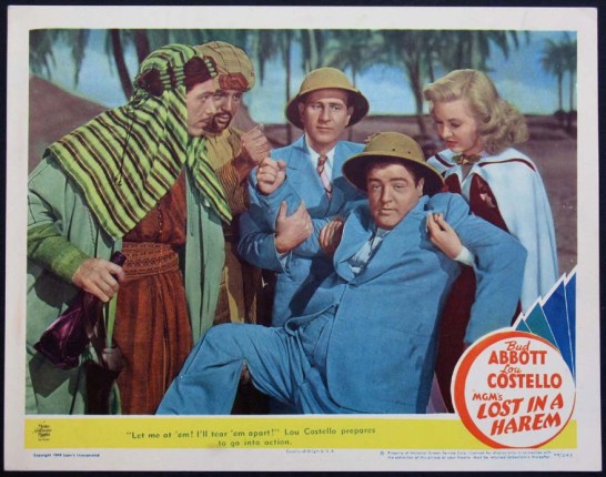 Up to this point, the smash comedy team of Bud Abbott and Lou Costello having graduated from the world of burlesque had starred in twelve movies from 1940 onward. All under the banner of Universal Studios. Lost In a Harem marked the first time the boys would venture outside the confines of their home studio moving across town to the stages of MGM.