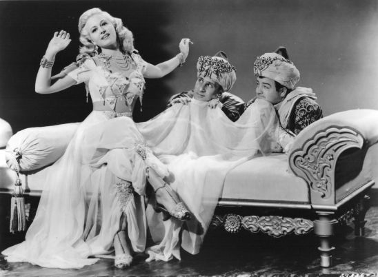 Playing like a tale of Arabian Nights, the duo are playing a two bit comedy team appearing as a supporting act for the platinum blonde singing star, Marilyn Maxwell who is stuck singing in night clubs of the middle east. Marilyn will open the show with a song and references that new singing idol, Frank Sinatra, in her lyrics. In between numbers the less than appreciated Bud and Lou will work in one of their skits, this time a magic trick that doesn’t go over well with the all male crowd who just want to ogle the beautiful Miss Maxwell.
