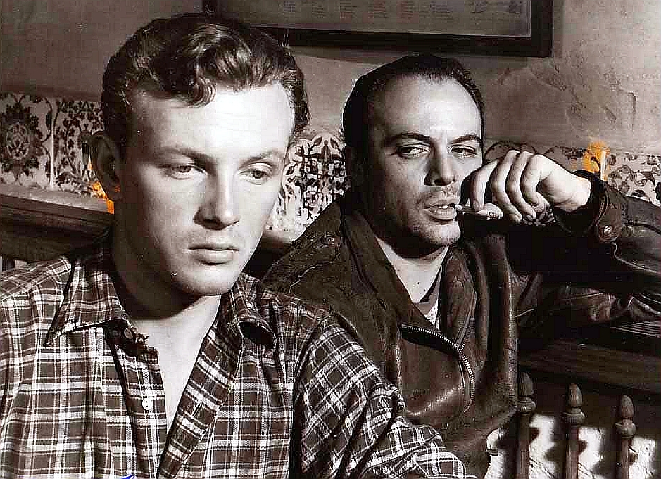 It’s here that he’ll find himself the center of attraction in the bar where he’ll meet the house piano player/barfly, Wilfrid Hyde-White, as well as Lom and Sernas who have returned from the landslide. From the outset Lom is shifty and wants to know if the stranger witnessed anything on the road leading to the village. Howard isn’t admitting to anything while sharing a drink with the trio and is more than happy to make the acquaintance of the innkeeper, Anouk Aimee. Billed here above the title next to Howard as simply, Anouk.
