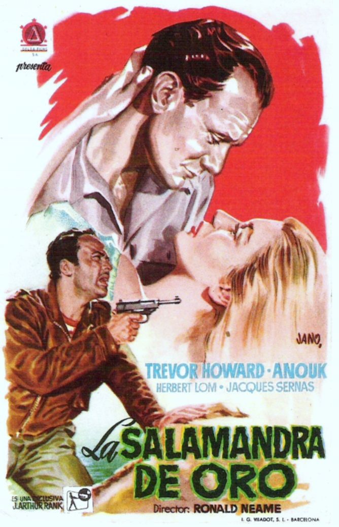 Director Ronald Neame also had a hand in the screenplay of this nifty Noir thriller starring a pair of actors I’ve long numbered among my many favorites. Trevor Howard and Herbert Lom. Archeologist Howard will find himself among a gang of cutthroat gun runners in post WW2 Tunisia when he’s called in to catalogue a treasure trove of Napoleonic artifacts to be sent back to a British museum. Among them is the movie’s title. A large golden salamander with the highlighted quote above etched into the figures base. It’s a quote that will prey heavily upon Howard following his arrival at a small village along the Tunisian coast line.