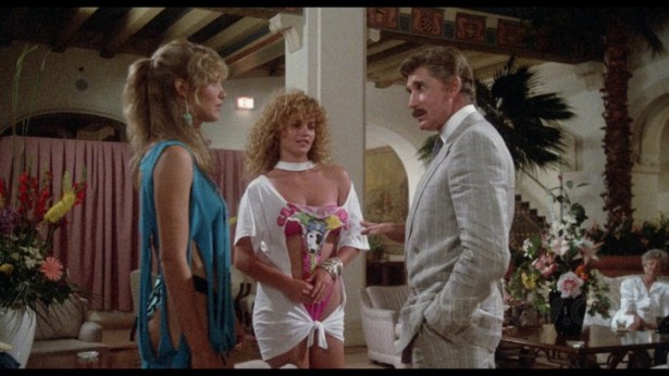Time to cut and move on to more important things for the VHS rental crowd. Mainly some barely clothed girls looking for some fun in the sun while on their March break. For their parts, Clare Carey and Shari Shattuck are suitably cast as the gals in the skimpy outfits looking for a room to party at in a swank hotel run by a wealthy yet shady Wall Street player, Alex Cord. Mr. Cord has a definite taste for young ladies which doesn’t sit well with his underworld associates, Kennedy and Gulager. While Cord is looking to have some nocturnal fun, his pals want to get the hell out of Dodge and make their way to the Caymans before the trio are indicted for illegal activities.
