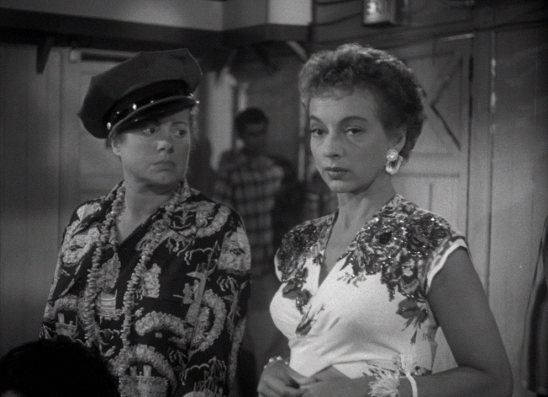 Ahn quickly proves to be a cold blooded killer. He batters Miss Gates to death looking for information on Corey’s cash and is seen on the property by a just arriving Keyes. For her part Keyes who is new to the islands has enlisted a street smart cabby played by Elsa Lanchester. When Corey gets news of his girlfriends murder, he makes a break from police incarceration to find out who has killed her. He’ll head to what’s known as Hell’s Half Acre. A slum full of crime, prostitution and most any other illegal activity one can come up with in 1950’s cinema. All that plus Marie Windsor.