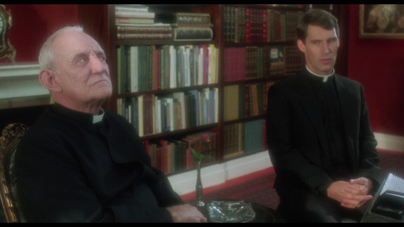 Time to move on three years and Priest Ben Cross is called in to talk down a jumper who is about to throw himself from a high rise building. Ben appears to be making progress but when he touches the man who wants to throw himself off the building’s ledge it’s Ben who takes the fall. Shockingly Ben hasn’t a mark on him and awakes in a hospital bed leaving Ned Beatty’s police detective baffled. Perhaps there’s something special about the young priest because the Arch Bishop, Hal Holbrook, under the advice of the elderly Howard who is also a member of the hierarchy decide to reopen the church from the opening scene and assign Cross to the parish.