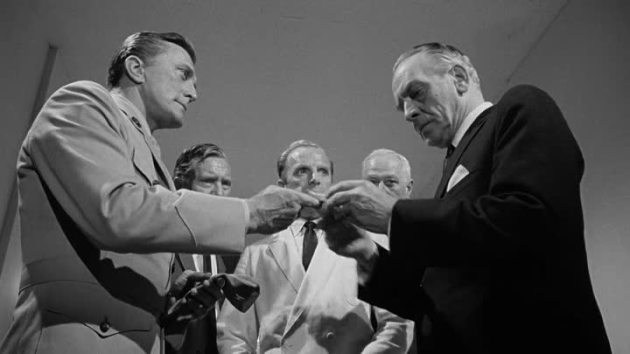 On opposites sides of the law, Henry Fonda plays the warden and Kirk the inmate … Henry,“Why do you work at it so hard proving to yourself you’re a sonuvabitch?” … Kirk, “Because I am. It’s my profession.”