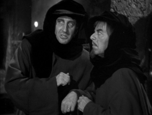 For King Basil, his popularity amongst the common man is at an all time low. The people are starving and Paris is surrounded by an invading army, cut off from supplies to replenish their cupboards. Basil knows there is treachery in the court and will boldly follow a lead into a tavern while incognito run by Sidney Toler. Here Basil will meet Ellen Drew and a host of other street urchins feasting on the King’s meats when Colman turns up with the stolen goods in hand. This all leads to an amusing scene when Colman is questioned by the hooded stranger as to what he would do if he were King.