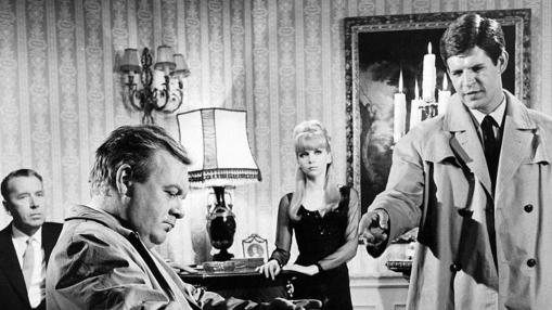 The victim was heading to a night of music where he sits in with three old friends in a stringed quartet. Arriving in his place is an Inspector played by Patrick Wymark. And so the questions begin as to the whereabouts earlier in the evening of those awaiting the dead man’s arrival. The surviving members of the quartet are Alexander Knox, Thorley Walters and Robert Crewdson. Also in the home are Knox’s daughter Judy Huxtable and her beau, Don Borisenko (sounds like a hockey player’s name).