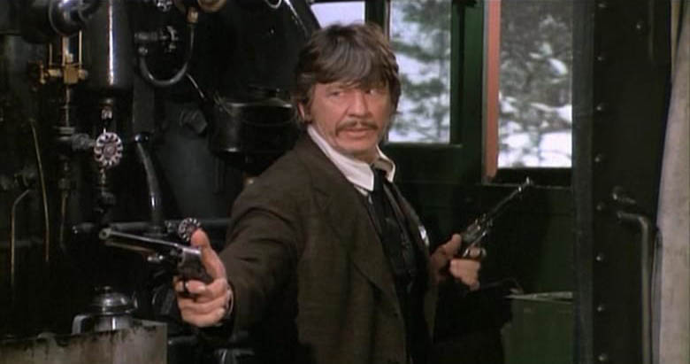 After a pair of Lauter’s officers go missing and Dr. Huddleston ( aka The Big Lebowski) is found dead, Bronson, is called upon to look at the body. His wanted poster points out he had medical training before going bad and his findings are that the good doctor was murdered. There’s a killer on board and a mystery further up the track. One that is exposed not long into the film. Screen heavy Robert Tessier is lying in wait at the Fort. He and his outlaw gang have taken control and are awaiting the train’s arrival. There is no plague befallen the Fort and Tessier’s in league with someone aboard the train. Bronson fans will instantly recognize Tessier for his knuckle busting fist fight against Bronson in Hard Times.