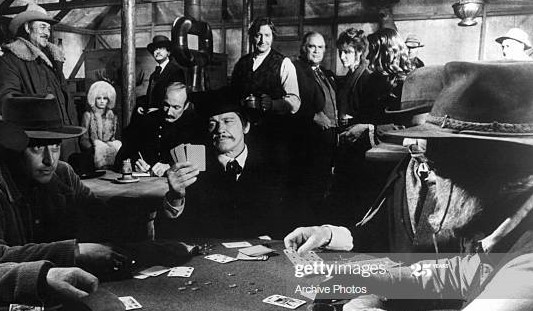 It’s in this small settlement in a makeshift saloon that Bronson makes a striking entrance to our story. Barely uttering a word he gets involved in a poker game and is caught cheating by John Mitchum. Western favorite Ben Johnson steps in as a Marshal and learns there’s a wanted poster on Bronson for multiple murders. He’ll now need the train to take his man to justice. What’s Bronson have to say to the charges against him ….. “I’m not a man of violence.”