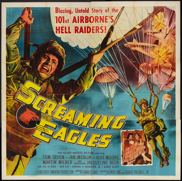 Screaming Eagles (1956) – Decent men on a mission flick with Tom Tryon behaving like a young James Cagney in any number of Warner Brothers efforts.Ā