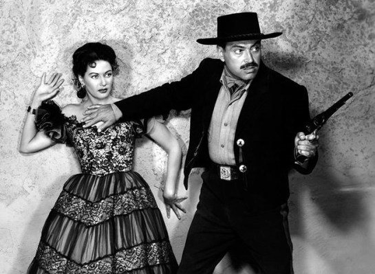 Mistrust is a constant in this technicolor effort. Between Armendariz and the less than lovable Bedoya, McCrea, has to remain on guard. And what of De Carlo? Is she falling for our leading man or is she spying on him for the General. Once she learns of the gold’s whereabouts we’ll be heading for a shootout and a rock’em sock’em fist fight highlighted by a quicksand bog. And just who is De Carlo going to throw that life saving rope to?
