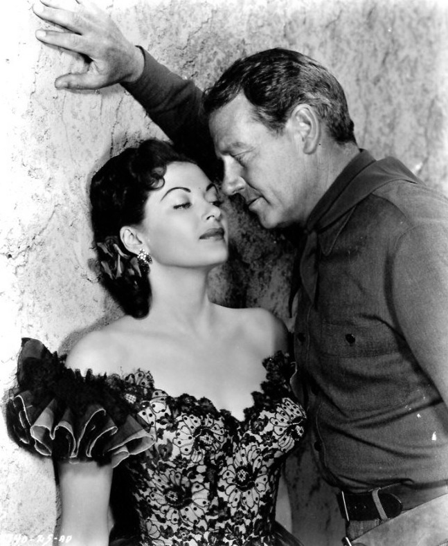I’m drawing your attention to the dress because over the course of this 81 minute western, De Carlo, changes costumes each and every time she makes an entrance. We’ll see this Canadian born beauty wearing mostly dresses in pink, black, red, yellow, green, white, purple, blue and back to pink at the fade out. Costume designer Rosemary Odell must have been kept on set to keep up with Yvonne’s color schemes.