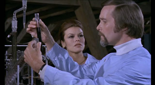 Kirk gets no help from the caretaker at the asylum in acquiring a subject so drinks his own concoction unleashing the Hyde side of his personality. So while the good doctor is romancing Susan Hampshire and constantly at odds with her father, Sir Michael Redgrave, over medical ethics his evil side takes to the bawdy houses drinking and whoring. It’s here that he’ll be captivated by the sexy Susan George and once enlisting the aide of Pleasence he’ll lock her up in a swank apartment for his own amusement.