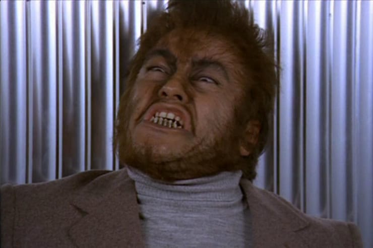 There’s a lot of plot shoehorned into this one so let’s just state that Miss Corrigan has pretty much moved on from seeing her new hubby cut down before her eyes and has taken a liking to the doomed werewolf, Naschy. Once those damned villagers attack the castle, Naschy and Corrigan, get into his getaway car and head to London. It’s here that he’ll seek the help of the grandson of the original Dr. Jekyll played by genre specialist, Jack Taylor. Damned if he doesn’t keep a bottle of Grand Pappy’s formula on hand for just such occasions. He figures to turn Naschy into Hyde to fend off the werewolf transformations. I kid you not!