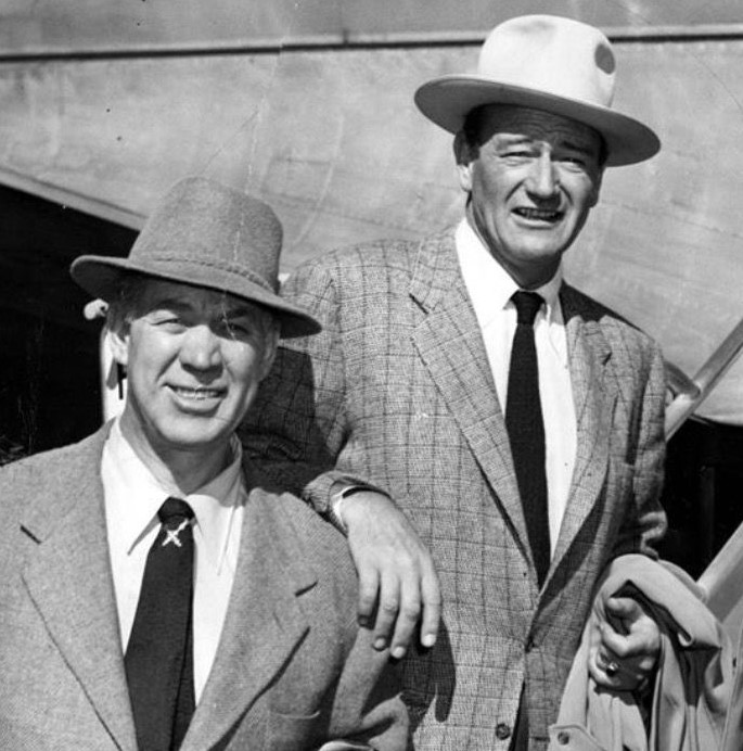 “Ladies and Gentlemen. Introducing the challenger weighing in at an estimate of 200 pounds, John Wayne! And in this corner the champion with the KO Punch, at a guesstimate of 215 pounds, Ward Bond!”