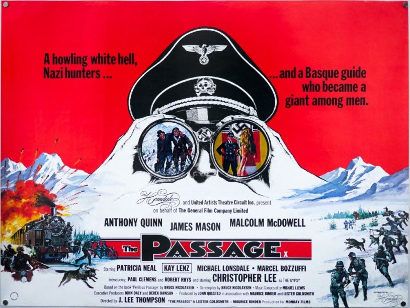 For those that are still collecting blu rays like yours truly, The Passage, was put out by Kino/Scorpion Releasing a couple years ago and included on the disc is a 30 minute interview with Malcolm McDowell. This alone makes the purchase worthwhile. McDowell never fails to entertain me when interviewed and reminiscing about past movies and the people he met and worked with. He points out that Quinn was a “force of nature” and that he based his SS officer on a comedy act. He claims J. Lee Thompson loved what he was doing rolling every Nazi performance he’d ever seen into one over the top characterization that was mostly improvised and his memories include funny bits on Lee and Mason. Always cheerful he points out how this performance scored him some of his best notices and at the same time some of his worst. (I find it irresistible even if his deeds are hard to stomach)