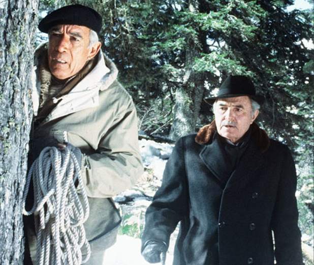 The chase will lead into the mountains and as I’ve always had a fondness for snowy landscapes on film combined with this cast of personal favorites assembled here I’ll admit to liking this film despite the numerous bad reviews it scored at the time of it’s release. I’ve left out much of the action and yes, Malcolm’s nauseous acts against all that is decent for you to discover on your own. While Macolm’s performance is the one that is sure to stand out for good or bad, watch the commanding presence of Anthony Quinn. At the time of the production Quinn was 64 and I dare say he was far more believable than any action hero a film like this would have been saddled with today. One with a washboard stomach who gives off an air of indestructibility. Quinn acted sporadically over the next 20 years and while never out of work he never scored what I would call a Burt Lancaster like role in Atlantic City and that’s unfortunate. I’ve been a Quinn fan since I was old enough to recognize him in those old black and white Warner Brother movies or as an Indian fighting Joel McCrea’s Buffalo Bill.