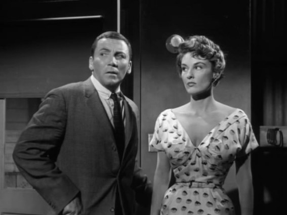 Mitchell will soon find himself in front of a local police inspector played by Michael Granger. The Inspector wants to know if Mitchell can add anything to his search for the missing American and suggests the pair go to further question the man’s wife. BANG! In classic Noir fashion it turns out Mitchell had no idea that his old pal Hank was even married let alone to his one time flame, the sexy Allison Hayes who is about to don the first of her many outfits in the film’s brief running time.