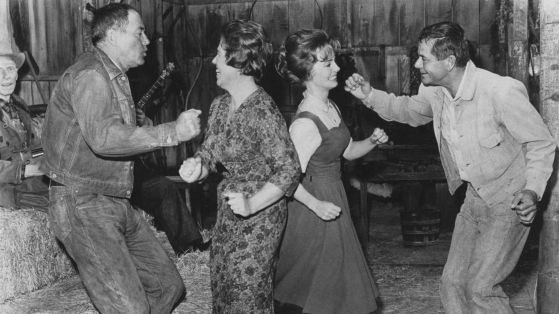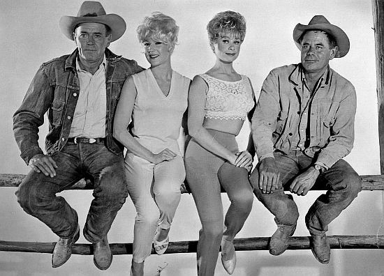 From old pal Denver Pyle turning up to the arrival of spring, the boys are determined to break away from the underhanded Chill Wills. They’ll even take the old Roan horse in lieu of some wages owed to them and they’re off to the Sedona rodeo where they intend to enter the Roan and lay bets that not a single cowboy can ride him. While at the rodeo you may recognize the announcer in the broadcast tower. It’s none other than Barton MacLane. Then there’s the “fun girls” they’ll pick up to add some comical shenanigans to their crashing the town played by Sue Ane Langdon and Hope Holiday. All I can say about their appearance is to remember when one goes skinny dipping in the fish hatchery don’t forget to grab your clothes while making a fast getaway when the game warden comes a calling.