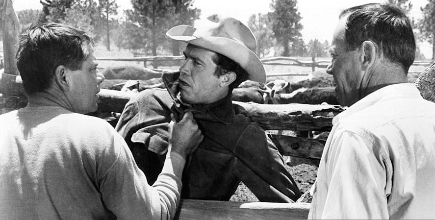 And so begins the long winter months of isolation that finds the pair roping steers and cows that have been grazing in the Arizona countryside. Now all they really have to contend with is the Roan who continues to throw Glenn at the most inopportune times and an unbilled Warren Oates. Unbilled??? Oates has also been gathering strays and his methods don’t meet with Glenn’s approval which puts the pair at odds. As the star player Glenn will win out and the punishment he dishes out to Oates is most suitable.