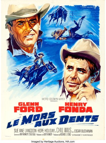 Kennedy did double duty on this MGM release. He not only directed the film but also scored the screenplay credit. Our modern day saddle tramps are played by two veterans of the western genre. Glenn Ford in the dominant role and Henry Fonda serving as his sidekick. They’re a couple of good ole’ boys who just can’t say no to Chill Wills who continually hires them on as bronc riders and through winters at an isolated cabin to gather stray cattle. This time around there’s a Roan horse in the corral just waiting to be tamed.