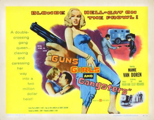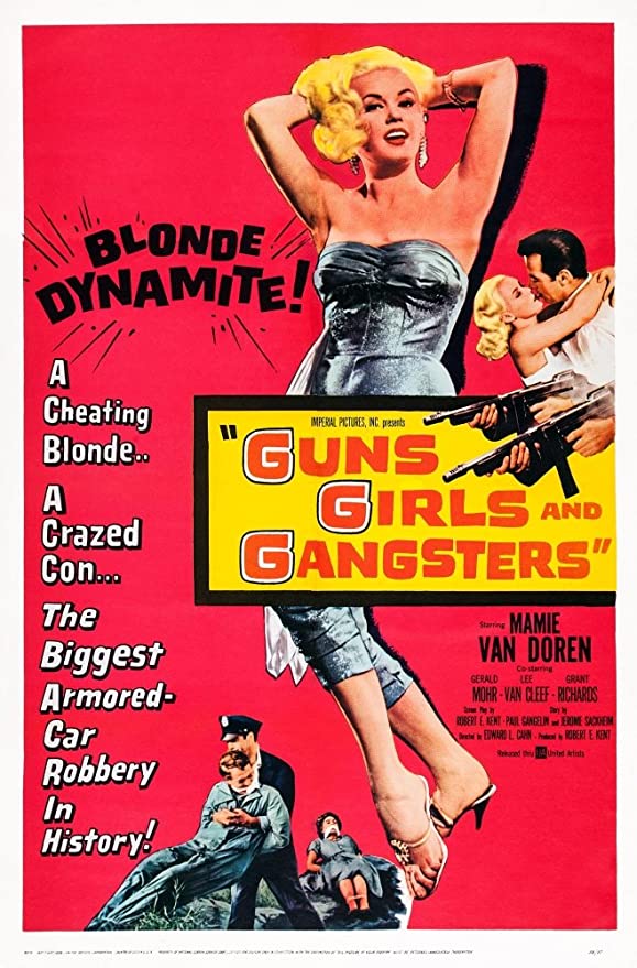There are plenty of guns and gangsters in this Edward L. Cahn directed “B” and as for girls …. well the male cast get all they can handle in one package, the blonde bombshell Mamie Van Doren, who scores top billing above her costars, Gerald Mohr and Lee Van Cleef.