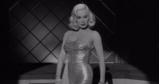 In order to get on the inside with local gangland figure, Grant Richards, Mohr figures on making a play for the featured performer in Richards’ nightclub. If you said Miss Mamie, you’d be right. Time to introduce our blonde attraction to the paying customers. In a form fitting, silky low cut outfit, Mamie, hits the dance floor for a sexy number to the appreciation of the male members in the audience. Following the show she’ll find Mohr in her dressing room.