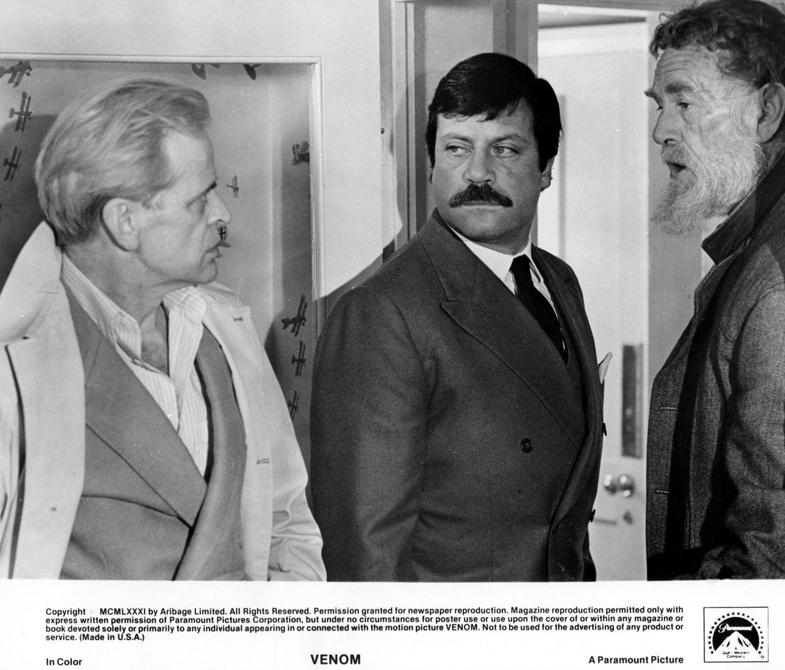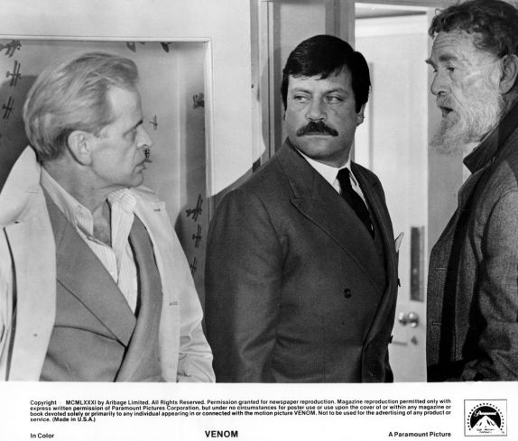 Back to Klaus and Ollie. I’ve heard some stories about the shoot which mainly involved an inebriated Ollie tormenting Klaus. I can see that but I can also see a quick tempered Klaus blowing his stack and giving it right back to the barrel chested Reed. Again, I’d loved to have been on set. Reed would be back to face off against another demon snake the following year alongside Peter Fonda in Spasms. Of the two films if given a choice I prefer Venom. I think it’s a better crafted film and hard not to love the cast assembled for this thriller that I wouldn’t classify as an outright horror film.