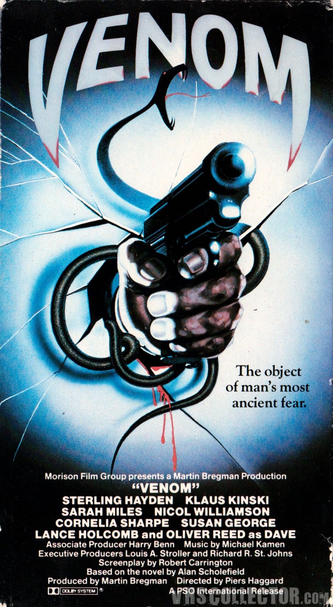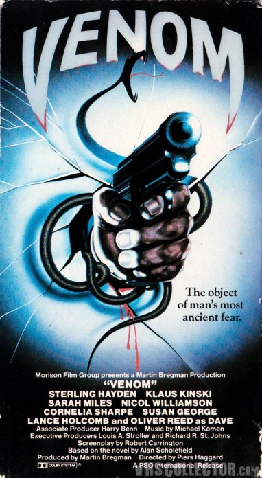 Venom shouldn’t be too hard to locate as it’s out on both DVD and blu ray via Blue Underground or if you’ve still got a VHS machine then maybe you can locate a copy down at the video retailer at the local fleamarket next to the pet store that houses reptiles and ……….. snakes?
