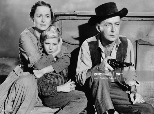 Another film I go back to quite often aside from Robin Hood and the others I’ve mentioned is a western she appeared in with Alan Ladd titled, The Proud Rebel. A later film for Miss Olivia she plays a strong willed frontier woman who takes on Ladd as a ranch hand and his young son (David Ladd) who has lost the power of speech all the while having to defend herself against Dean Jagger who wants to buy her out. Love this Shane like film where she and the Ladd’s make a great team on screen.