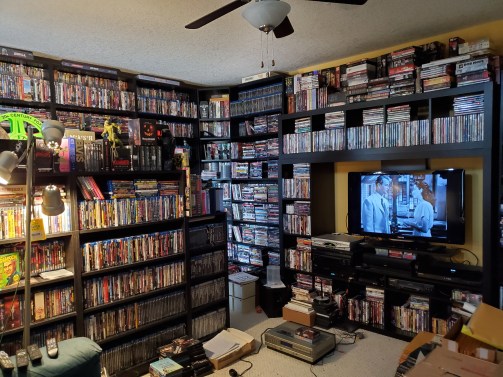 With more titles than I care to admit too in my collection, the vast majority are of course on the blu ray and DVD format. I still have boxes upon boxes of VHS tapes in the garage that I generally buy and sell but the only market that seems steady are the Horror and Sci-Fi titles. Then there’s my laser disc machine and a few titles I have kept for either sentimental reasons or in some cases the only way one can watch a specific title due to it’s never being released on formats still to come making them hard to find and collectible. Like the original cuts of the Star Wars films before Mr. Lucas began to tinker with them. In this case I’ve been told by my two sons I can’t sell them off.