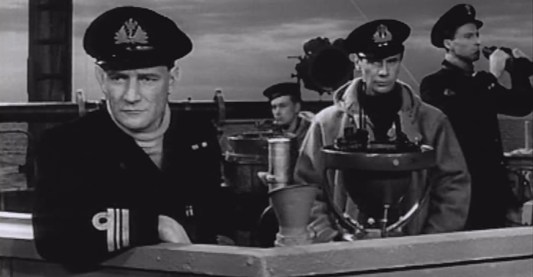 The film opens with the ship set to sail from Halifax, Nova Scotia, with Lee and Attenborough as seaman assigned to the ship that is to be commanded by our leading man, Howard, who has come out of military retirement. Second in command, James Donald, is playing a Canadian Officer assigned to Howard. The two won’t see eye to eye for a good majority of the film with Howard’s stern commander and Donald’s more humane approach towards the crew.