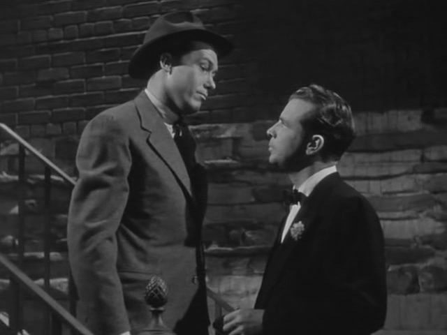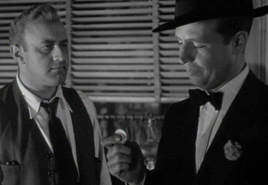 Firm advice from Powell to the lonely hat check girl at the casino played by Nina Foch. She’s pining over a broken relationship with the same shady cop that Cobb’s investigating. Of course she’s also got a thinly veiled crush on Powell as does Miss Ellen Drew who is practically throwing herself at him. This despite the fact that she’s married to his business partner, Gomez.