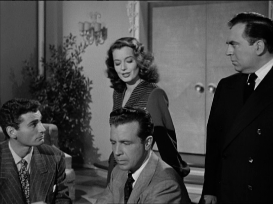 It’s at this point of the film that a young, unbilled actor makes his appearance in the film attending a private poker game Gomez is hosting. It’s a dark haired Jeff Chandler and with his deep voice and good looks there’s little doubt that he made an impression on not just the ladies but film goers in general at the time. He easily stands out among those in the smaller roles and as we now know was destined for stardom. That’s Chandler below in the left corner.
