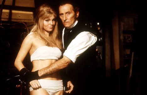 The Gentleman of Horror. When Peter signed on to play Baron Frankenstein for Hammer in 1957 he put his career on the fast track to becoming an icon of horror cinema. Unlike the Universal films of the 30’s and 40’s, Hammer’s series of Frankenstein films followed the Baron/Peter as opposed to the Monster. With all his props and gadgets at hand, Peter, brought an arrogance and black humor to the films that remains the heart of the series. The films are as follows, The Curse of Frankenstein, The Revenge of F, The Evil of F, F Created Woman, F Must Be Destroyed and F and the Monster From Hell. There’s even a cameo he made as The Baron alongside Christopher Lee’s Dracula in the 1970 comedy, One More Time.