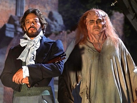 When Roger Corman returned to directing in 1990, he cast the late Raul Julia as Victor Frankenstein in the cleverly plotted Frankenstein Unbound. A story that sees a time traveler and fellow scientist from the future, John Hurt, sent back to the days of Mary Shelley and the man who inspired her to write her novel. A bearded Julia plays his Victor coldly and will enlist Hurt and his knowledge of the future to further his experiments in creating a mate for his Monster with the stitched eyes.