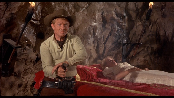 John has moved right into his new identity and disapproves of his niece and the outlaw Courtney’s intended marriage. And where does he disappear to in the daylight? Thankfully there’s an abandoned silver mine that he can lay up in when the sun shines the brightest. Now that he’s become her ward he orders Courtney off the ranch and employs Kurt’s dad, Bing, to play rough with the famous outlaw. I’ll let you figure out for yourself who’s going to win that gun draw.