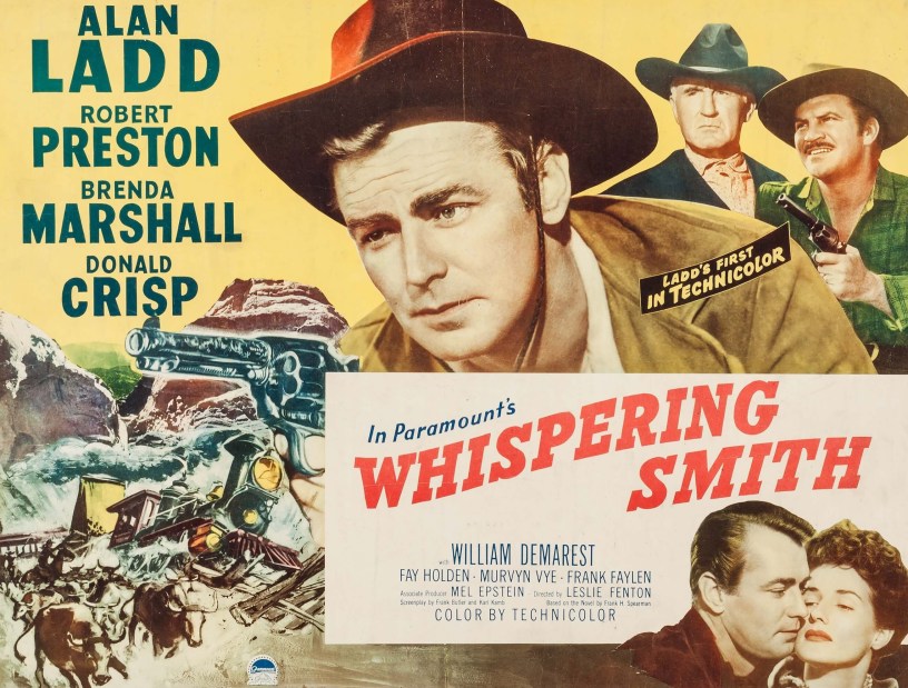 Alan Ladd may be the good guy but he sure looks great in that black hat which at one time we’re reserved for the outlaws. Truthfully his Whispering Smith character and this film in general play much like a Randolph Scott feature. I could easily have seen Scott in the lead role. Trivia wise I also got a kick out of Brenda Marshall’s character being named Marion. So was Jean Arthur in Shane and there’s little doubt that Ladd was in love with both women and while Brenda is still in love with him, I’m pretty sure Miss Arthur’s Marion was fighting the temptation.