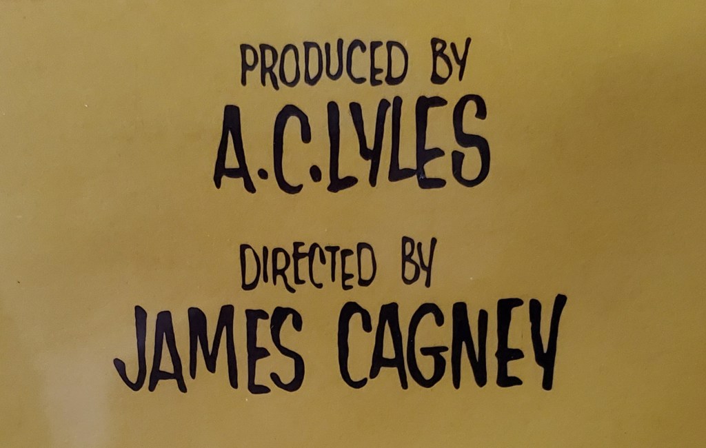 James Cagney the director. Unlike Eastwood who was a big fan of Cagney, Jimmy only directed one film in his long career and chose not to appear in it. Cagney apparently stepped in to direct the film as a favor to his friend and producer A.C. Lyles. The plot is a crime drama putting Cagney in familiar territory. Cagney’s name on the one sheet is the exact reason I acquired this mint shape original a number of years ago.
