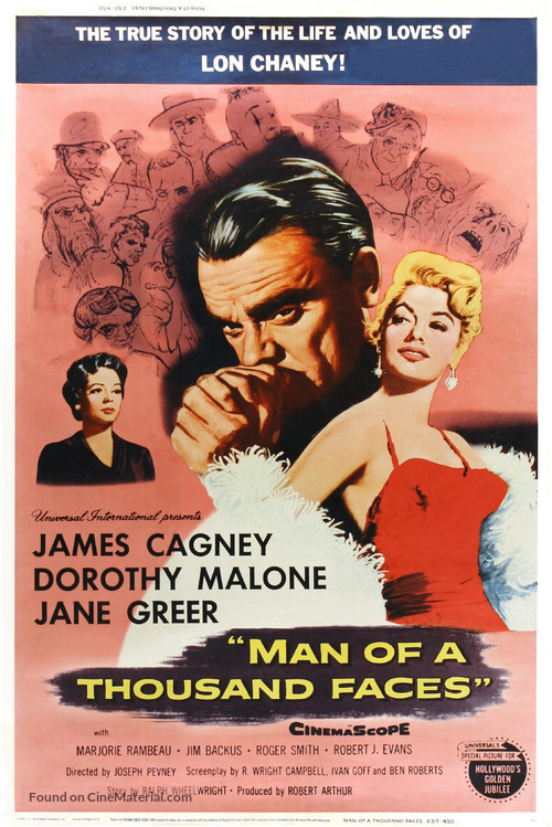 Cagney played the legendary silent film star, Lon Chaney, in the 1957 bio-pic The Man of a Thousand faces. Perhaps a bit melodramatic at times, the film is a must see for fans of the classic silent era and those who love the origins of the Universal Monsters. Cagney gets to play a number of Chaney’s creations on camera during the making of The Phantom, The Hunchback and other assorted characters the silent film legend made his own. Backed by a thoughtful script, costarring with Cagney are Dorothy Malone, Jane Greer and even Robert Evans fittingly portraying MGM production chief Irving Thalberg. Evans would famously go on to head production at Paramount in the 1970’s. A quick side note, Cagney appeared with Lon Chaney Jr. one time in 1953’s A Lion Is In the Streets.