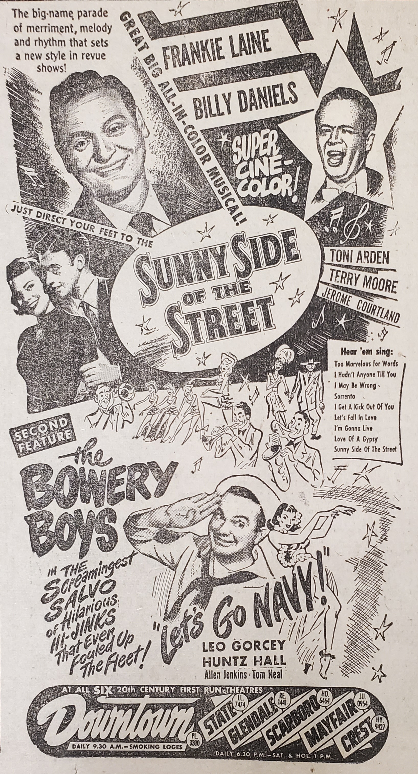 Maybe you’d rather see Leo and Huntz in Let’s Go Navy? Or perhaps sing along with Frankie Laine?