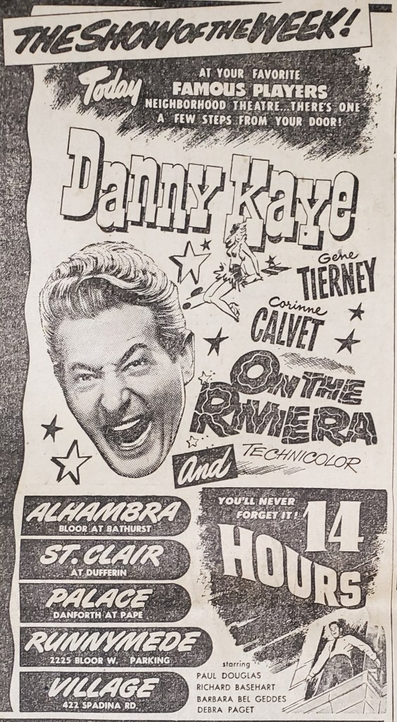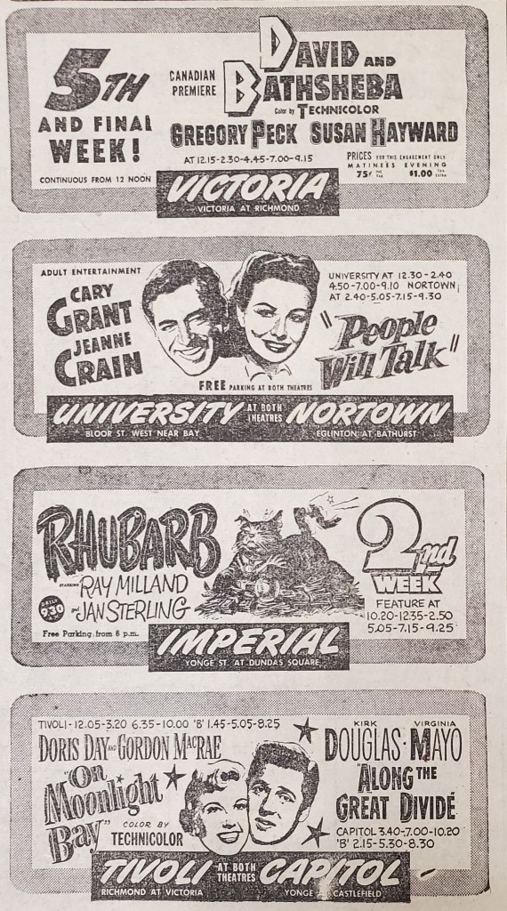 In my constant search for movie memorabilia I happened across a Toronto Daily Star edition from the title date. Time to board the time machine once again with Rod Taylor and journey back to the days when our classic movie heroes could be found all over town.