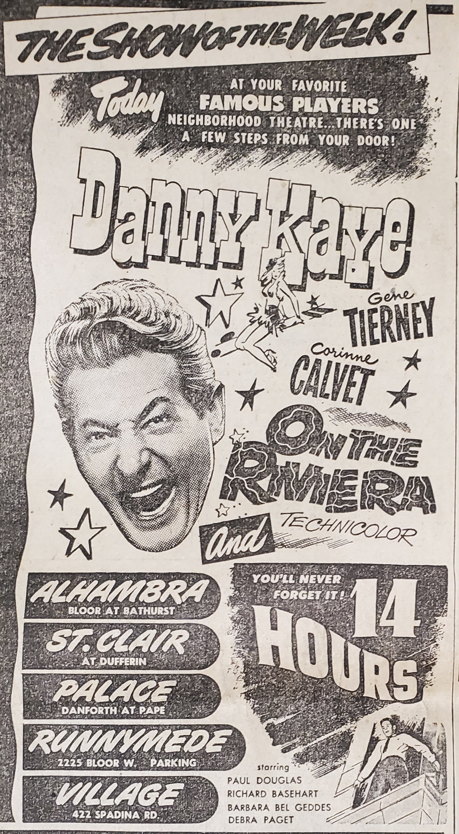 The zaniness of Danny Kaye never fails to entertain and if you take in 14 Hours, why not tell some stranger in the row ahead of you that the girl billed way down the cast list who goes by the name Grace Kelly will very soon be one of the most famous personalities on the face of the Earth.
