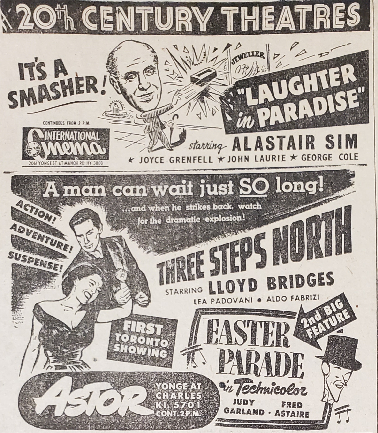 Maybe go international with an Alastair Sim comedy? No doubt that art work has caught my eye for the latest Lloyd Bridges effort making it’s FIRST Toronto showing.