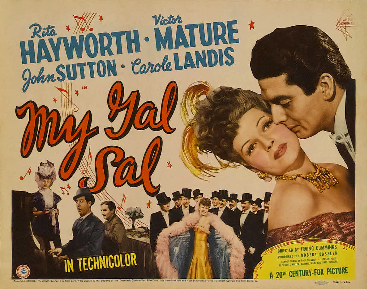 My Gal Sal (1942) Rita Hayworth in glorious technicolor. A musical that pairs her with Victor Mature. She’s the famous songstress, he the songwriter. They’re constantly bickering at each other while flirting with the altar the entire film. OK of it’s type but no classic though Rita is captivating and Big Vic a far better actor than he ever gave himself credit for.
