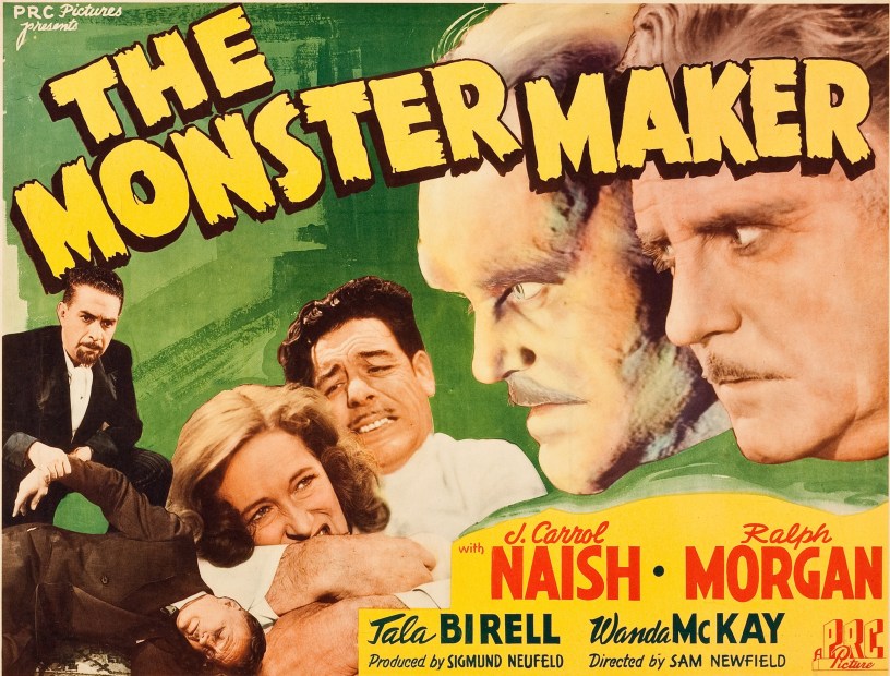 Utilizing multiple plot devices from the Universal Monsters division or any number of Monogram/Lugosi quickies, this PRC release even takes the time to reference the Frankenstein Monster in the telling of it’s story. One that sees fringe boogeyman, J. Carrol Naish, enlisted to take on the role of a demented scientist we might normally see reserved for Bela, Boris or even Mr. Zucco.