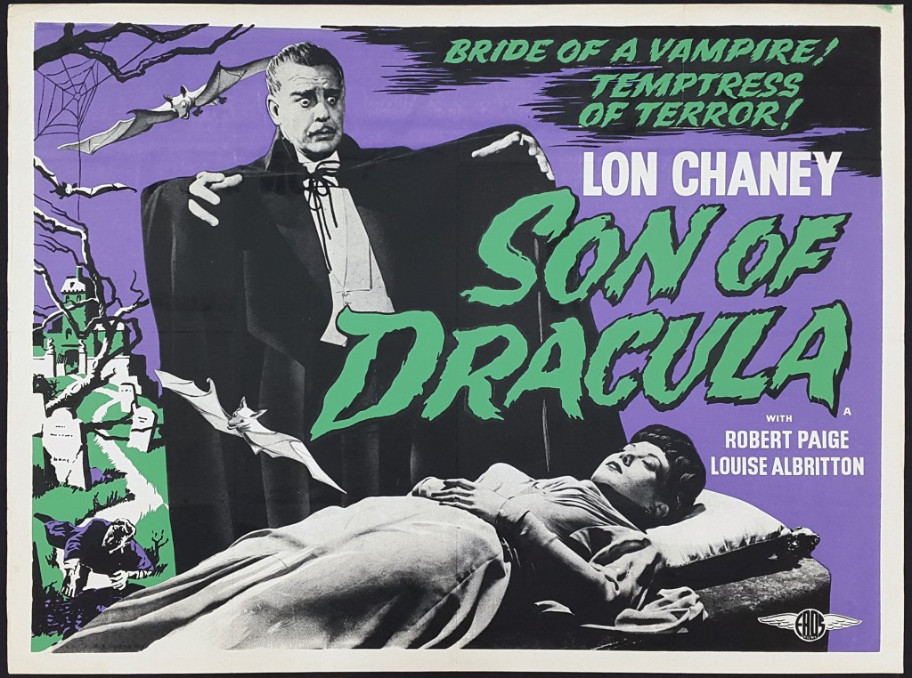Wouldn’t it have been interesting if Universal’s original choice for the 1931 film had taken place. Lon Chaney Sr. was slated to play the Count before throat cancer took his life just as the “talkies” overtook the industry. Had he played the role, then Son of Dracula would have had so much more going for it in regards to marketing with Lon Jr. donning the cape and fangs.